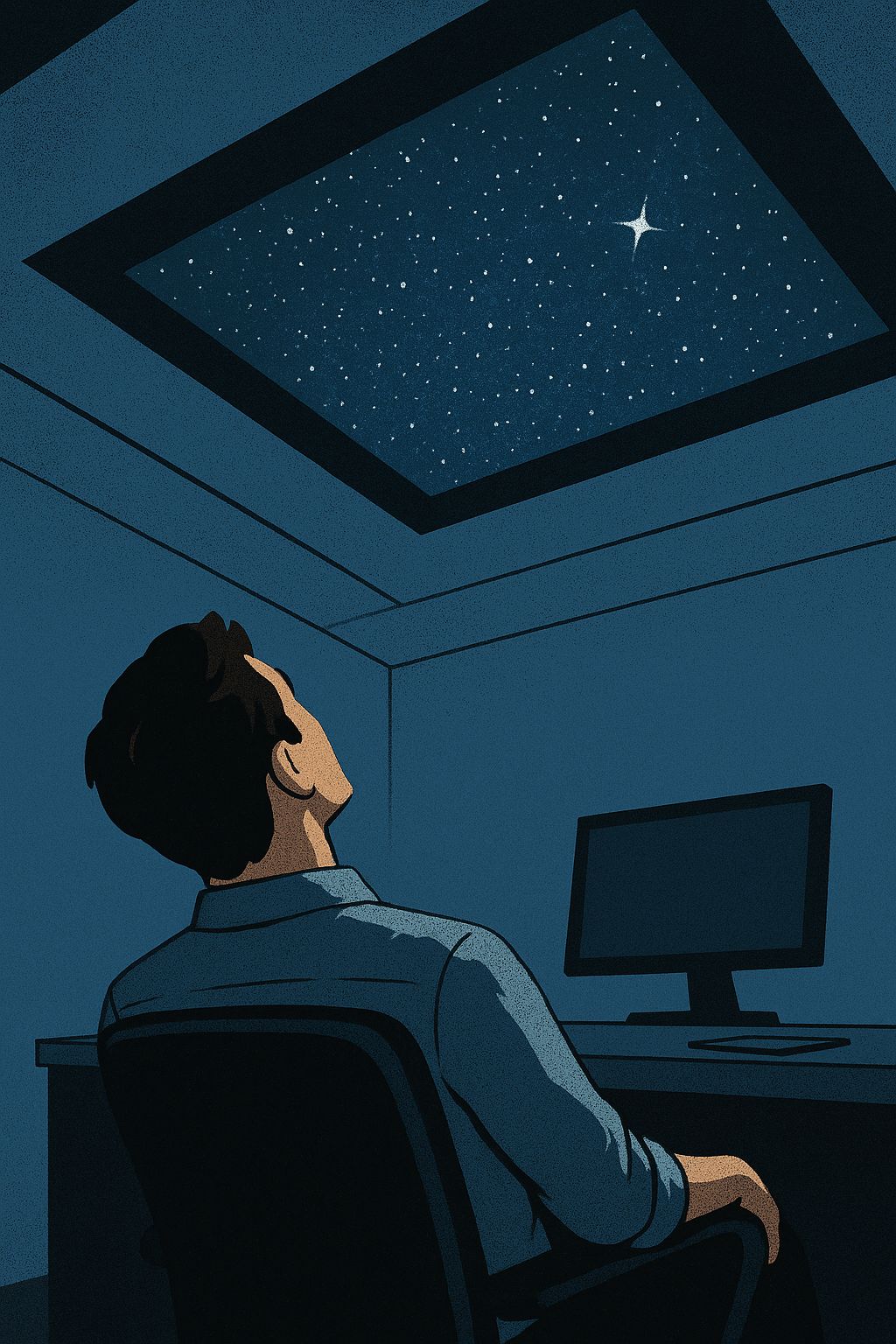 Through the moonroof, the stars flickered, but he didn’t see them. Instead notifications, deadlines, and client pings zipped over his vision. The traffic ticket on his way home didn’t help. His gym time earlier had already been overrun by mental drafts of proposals stamped ASAP. Tonight would be more of the same.